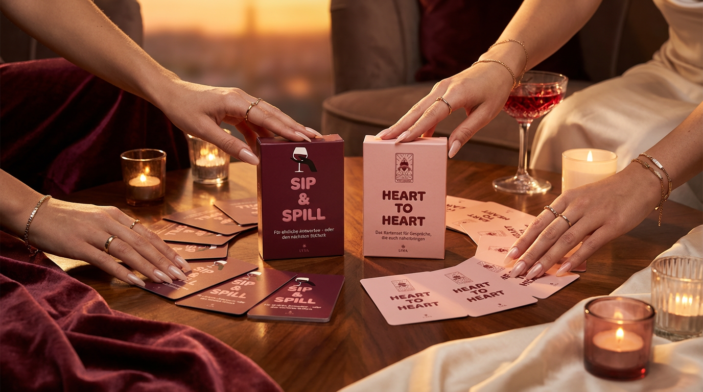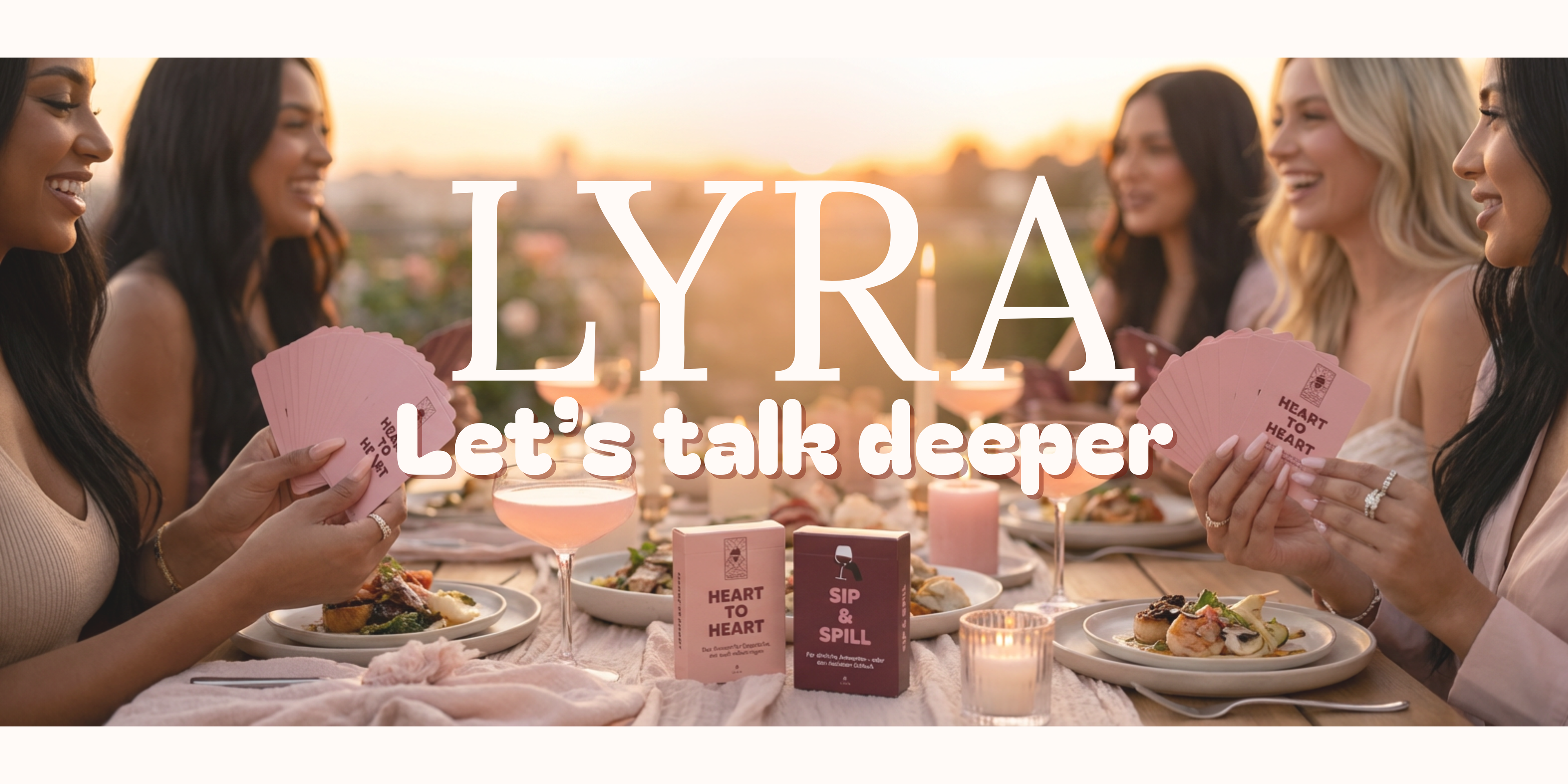 LYRA steht für Tiefe, Verbindung und Selbstliebe - verpackt in Design, das du fühlen kannst. Diese Kartensets öffnen Türen zu Gesprächen, die man sonst selten fühlt - und schaffen Räume, in denen du dich selbst und andere neu entdeckst.